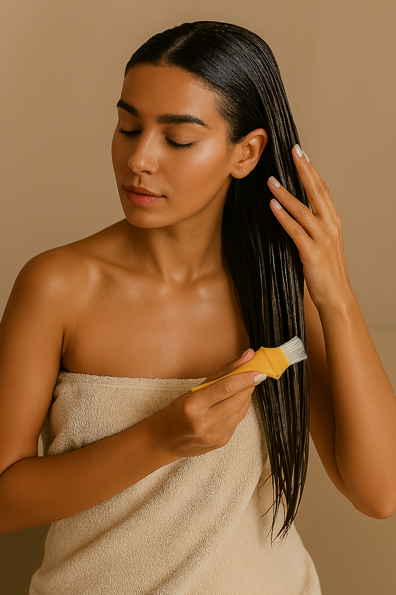 Huile de Ricin : fortifie les racines, améliore l’élasticité et prévient la casse.